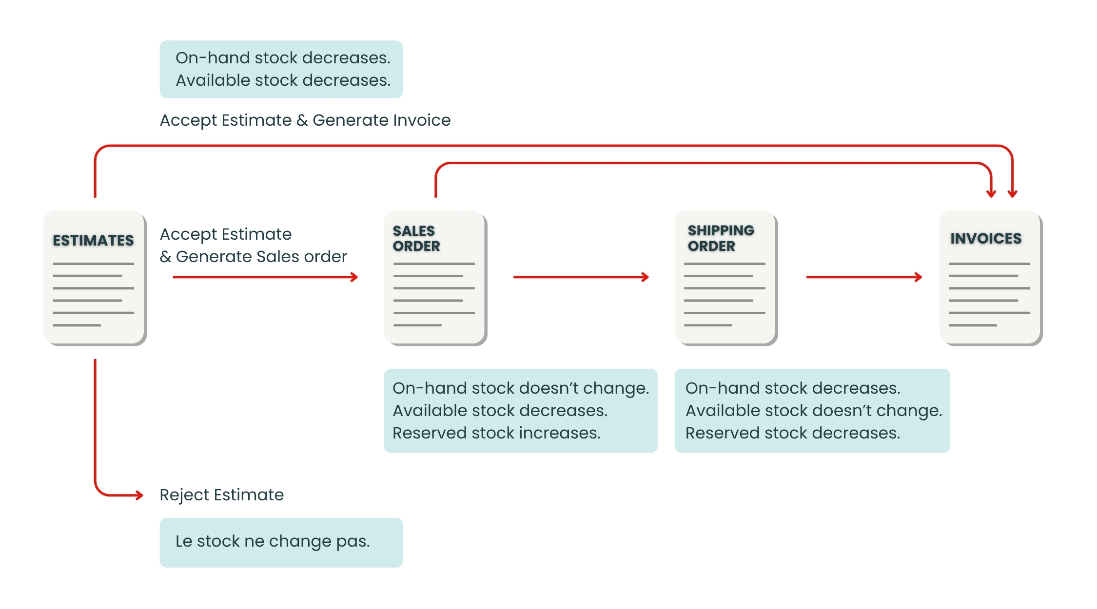 Here is how your inventory is updated based your Sales workflow: