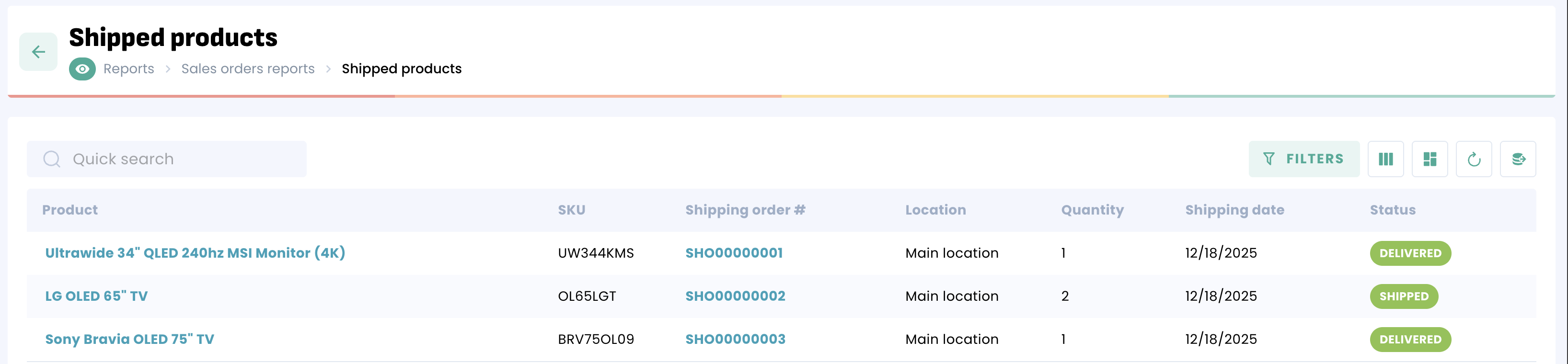 Sales Order reports will help you track products that have been shipped.