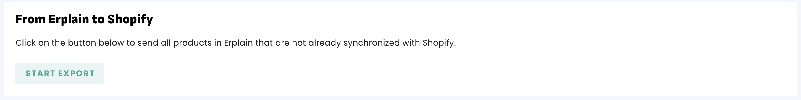 Click 'Start Export' to export your existing product from Erplain to Shopify.