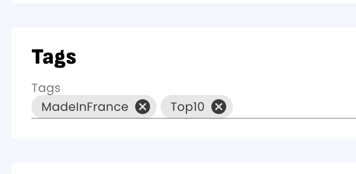 Vous pouvez ajouter plusieurs tags à vos produits ou contacts en sélectionnant des tags depuis la liste déroulante ou en saisissant de nouveaux tag :