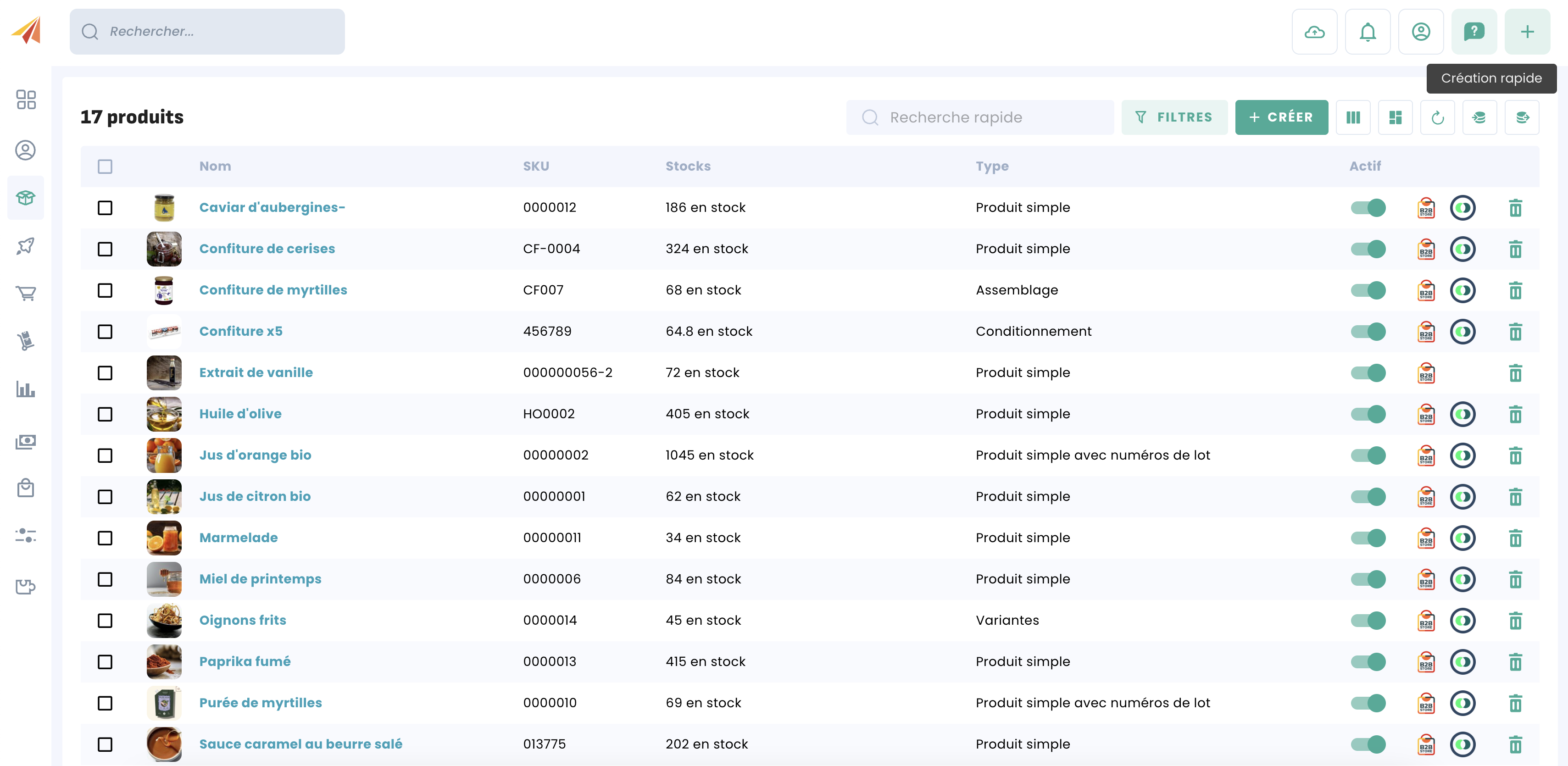 Vous pouvez également envoyer plusieurs produits à la fois à partir de votre liste de produits :