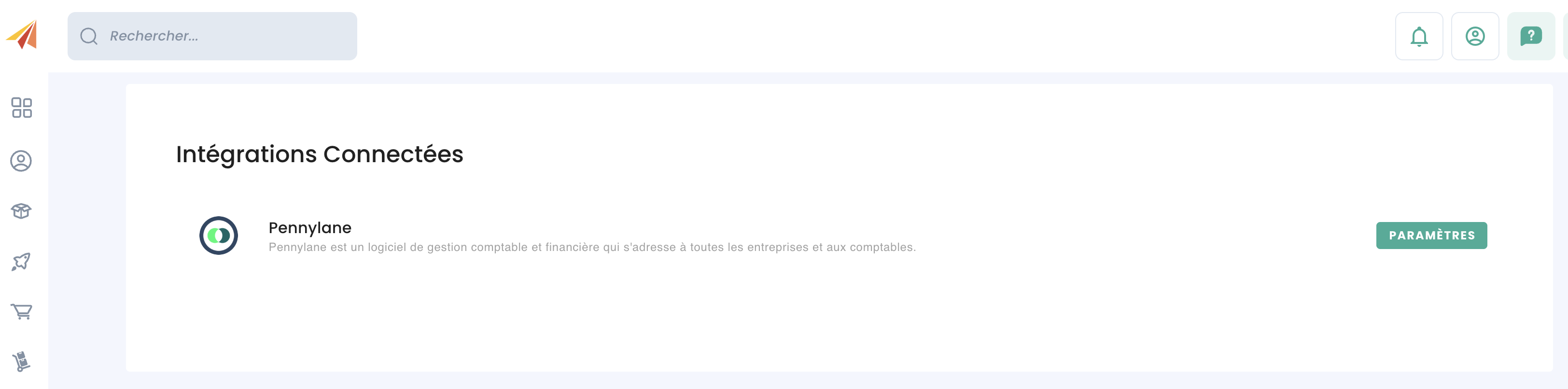 Une fois la connexion entre Erplain et Pennylane faite, vous devez régler les paramètres de l'intégration. Allez dans le menu "Intégrations" et cliquez sur les paramètres Pennylane :