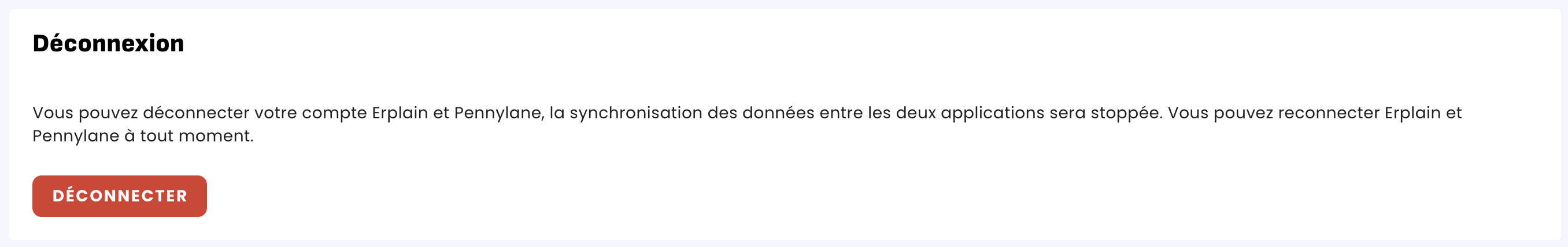 Cette option vous permet de déconnecter Erplain et Pennylane.