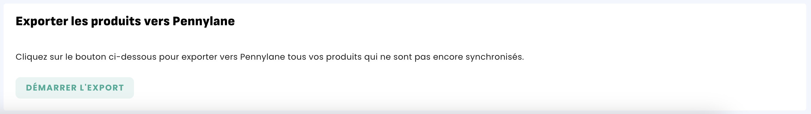 Si vous avez déjà créé des produits sur Erplain, vous pouvez les exporter vers Pennylane. Cliquez sur "Démarrer l'export" :