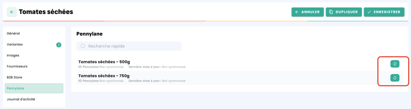 Une fois la connexion entre Erplain et Pennylane faite, vous pouvez synchroniser vos produits entre Erplain et Pennylane.